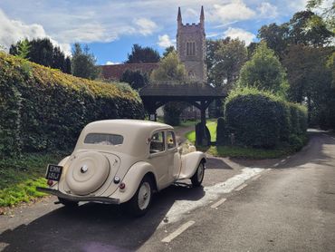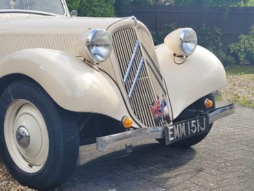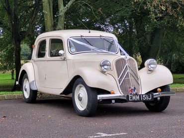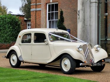 This car is ideal for carrying bridesmaids and other members of the bridal party when the bride is riding in our white Citroën 11BL.
